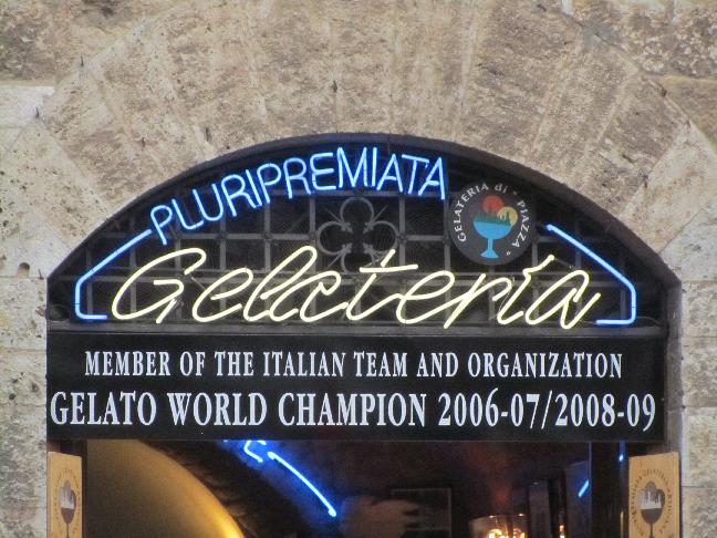 Le eccellenze culinarie non si fermano certo qua: a San Gimignano è infatti possibile anche provare uno dei migliori gelati d’Italia (e del mondo). In piazza della Cisterna è presente la Gelateria del Dondoli, eletta Campione del Mondo del Gelato negli anni 2006/2007 e 2008/2009. La scelta dei gusti è molto ricca (fanno anche il gelato per celiaci) ma quelli più famosi e assolutamente da provare sono lo zafferano “crema di Santa Fina”, il pistacchio e il caramello salato al sale rosa. Tutti i gusti sono molto buoni, ed i prezzi si aggirano, come di consueto, dai 2 ai 5 euro.